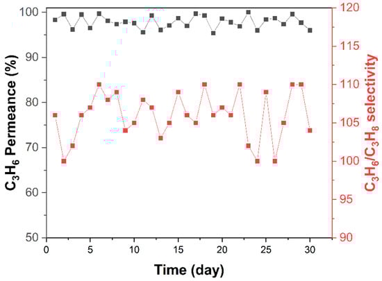 | Number of Repeat | C3H6 Permeance (GPU) | C3H8 Permeance (GPU) | C3H6/C3H8 Selectivity |