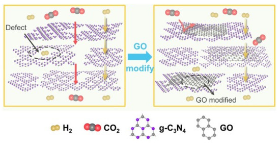 - Zhou, Y.; Zhang, Y.; Xue, J.; Wang, R.; Yin, Z.; Ding, L.; Wang, H. Graphene oxide-modified g-C3N4 nanosheet membranes for efficient hydrogen purification. Chem. Eng. J. 2021, 420, 129574. [Google Scholar] [CrossRef]