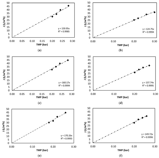 | Temperature (°C) | RM′ Values (bar·m2·h/L) | Correlation Rate R2 |