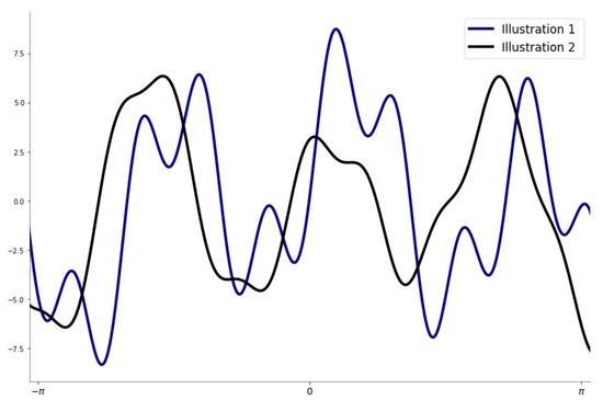 where , with which holds the amplitude, frequency, and the phase constant, respectively, for each sine function term. N is the number of terms involved in the series. Using N sine terms in Equation (2) serves to depict the different types of peaks in any given dataset, especially if the data are approximating periodic or recurrent behaviors.