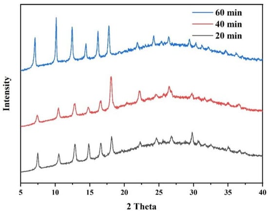 XRD patterns of ZIF-8/AAO membranes with different deposition times.