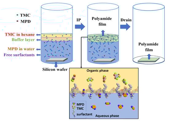 - Mansourpanah, Y.; Madaeni, S.S.; Rahimpour, A. Fabrication and development of interfacial polymerized thin-film composite nanofiltration membrane using different surfactants in organic phase; study of morphology and performance. J. Membr. Sci. 2009, 343, 219–228. [Google Scholar] [CrossRef]