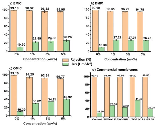 4.1. Performance Evaluation of IL-Mediated Interfacially Polymerized RO Membranes