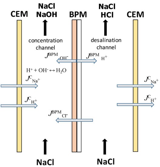 - Volgin, V.M.; Davydov, A.D. Ionic transport through ion-exchange and bipolar membranes. J. Membr. Sci. 2005, 259, 110–121. [Google Scholar] [CrossRef]