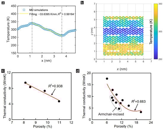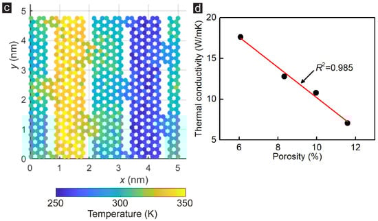 - Fang, T.-H.; Lee, Z.-W.; Chang, W.-J.; Huang, C.-C. Determining porosity effect on the thermal conductivity of single-layer graphene using a molecular dynamics simulation. Phys. E Low Dimens. Syst. Nanostructures 2019, 106, 90–94. [Google Scholar] [CrossRef]