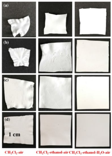 - Young, T.H.; Lin, D.J.; Gau, J.J.; Chuang, W.Y.; Cheng, L.P. Morphology of Crystalline Nylon-610 Membranes Prepared by the Immersion-Precipitation Process: Competition between Crystallization and Liquid–Liquid Phase Separation. Polymer 1999, 40, 5011–5021. [Google Scholar] [CrossRef]