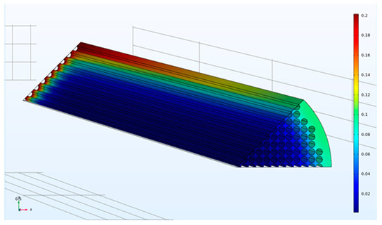 Sample three-dimensional CO2 mole fraction distributions for a square fiber packing in planar and circular bundles are illustrated in Figure 8 and Figure 9, respectively.