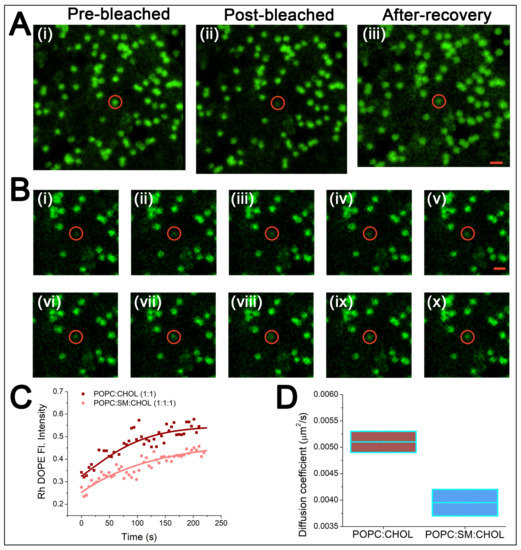 5.2. Fluorescence Recovery after Photobleaching (FRAP) of Lipid Bilayers