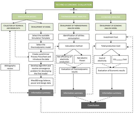 Considering the sequential steps, which are shown in Figure 5, the resolution of the thermodynamic and economic analyses for each case are described in the following sub-sections.