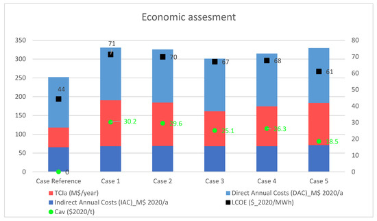 With respect to the concentration of flue gas contaminants, it was set at 20 ppm and 23 ppm for NOx and CO, respectively, after cleaning without CO2 capture. In the oxy-fuel cases, their concentrations were 5 ppm and 18 ppm, respectively. Finally, the particle control with FM and HF was 99% with 150 °C and 99% with 850 °C, respectively.
