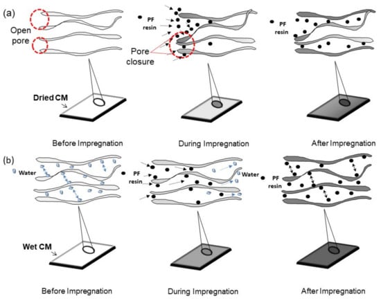 - Qing, Y.; Sabo, R.; Cai, Z.; Wu, Y. Resin impregnation of cellulose nanofibril films facilitated by water swelling. Cellulose 2013, 20, 303–313. [Google Scholar] [CrossRef]