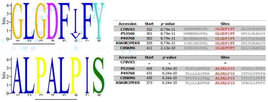 The data available from studies on the γ-secretase complexes in mammalian cells have indicated that particular amino acid motifs are crucial for its proteolytic activity, substrate recognition, and complex assembly []. To prove that these critical motifs are also conserved in the putative A. cantonensis protein available in the protein database UniProtKB (http://www.uniprot.org/; accessed on 3 March 2021) with the number C7BVX5 belonging to the A22 family, multiple sequence alignments were performed. Potential homologs were identified by PSI-BLAST, and the level of similarity among the PSs from these species was aligned to the Homo sapiens sequence. Motif analysis and multiple sequence alignment of the A. cantonensis PS sequence (C7BVX5) with the H. sapiens PS1 protein (P49768) was performed and showed only one compatible conserved motif sequence. Those of the catalytic pocket (YD; 192–194 and GLGD; 287–290) located in TM7 aligned with XD (aa 241) and GLGD (aa 332-335) of A. cantonensis PS, in TMD6 and TDM7, respectively (Figure 2).