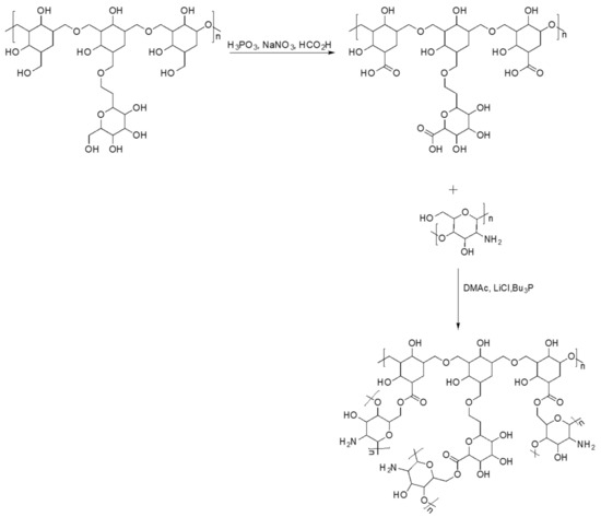 The synthesis of β-glucans–chitosan was carried out by using the Mitsunobu reaction that allows esters with high yields to be obtained from a primary or secondary alcohol and a carboxylic acid using a trisubstituted phosphine and a disubstituted azodicarboxylate [34].