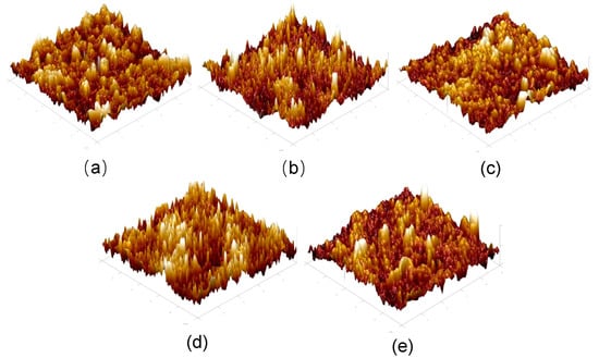 The AFM images of the FO membrane with different amounts of MXene nano-sheet: (a) T-1, (b) T-2, (c) T-3, (d) T-4, and (e) T-5, respectively.