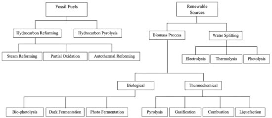 Routes to hydrogen production [28,40]. Reproduced with permission from Elsevier, 2022.