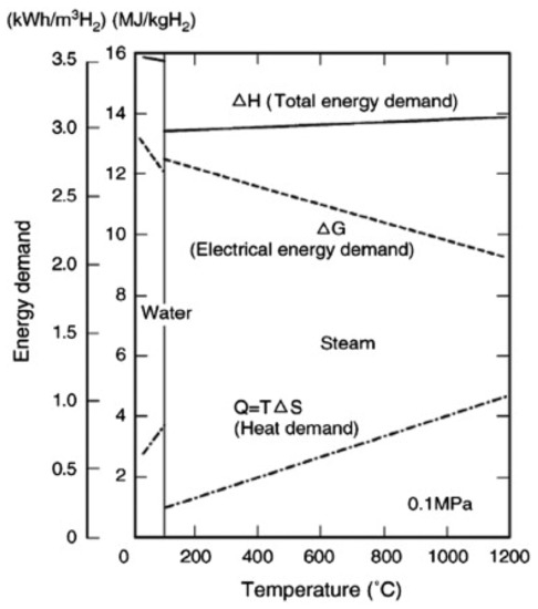 Water and steam electrolysis energy demand [57]. Reproduced with permission from Elsevier, 2022.