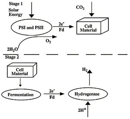 Production of hydrogen using an indirect bio-photolysis approach [83]. Reproduced with permission from Elsevier, 2022.