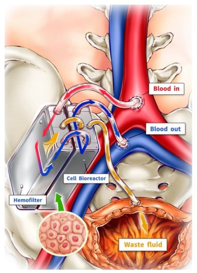 The physiological functions of the natural human kidneys include numerous metabolic and endocrinological functions. Erythropoietin generation [20], vitamin D synthesis [38], ammoniogenesis [39,40], glutathione metabolism [57], immunoregulatory support, and cytokine homeostasis [43] are all crucial for human physiology and potentially associated with elevation of mortality and morbidity of patients under long-term hemodialysis. Many clinical trials are ongoing for the practice of bioartificial kidneys produced by renal tubule cells cultured on semipermeable hollow fiber membranes. Some of them showed promising results such as reduced septic shock [74,75], appropriate inflammatory cytokine response [43], acceptable safety [75,76], and improved vitamin D metabolism [77].