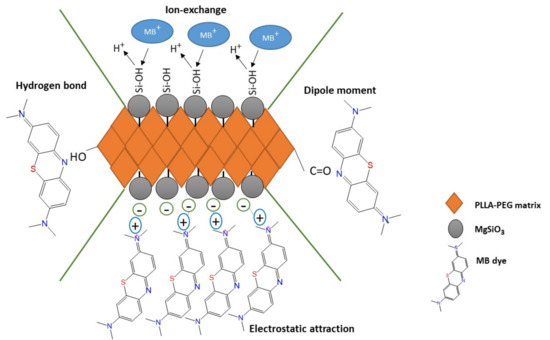 max value at 664 nm. The amount of the MB adsorbed onto PLA-PEG and PLA-PEG/MgSiO