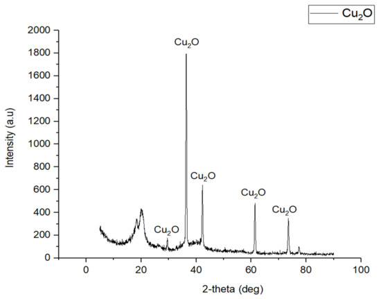 UV light photocatalyst and visible light photocatalyst are two types of photocatalysts. UV light photocatalysts, such as titanium dioxide (TiO2), require the use of a UV lamp to activate, but visible light photocatalysts only require a standard visible lamp or sunshine to activate [18]. As a result, visible light photocatalysts are more cost-effective. Copper (I) oxide (Cu2O), often known as cuprous oxide, has a relatively low bandgap, ranging from 2.0 to 2.4 eV, which makes it a strong candidate for solar energy harvesting. This chemical is plentiful, non-toxic, simple to synthesize, effective in absorbing visible light and inexpensive [21]. Photocatalysts, DNA biosensors, sensors, lithium-ion batteries [21], cancer therapeutic agents, printed electronics, antimicrobial agents and catalysis are just a few of the applications for Cu2O [22].