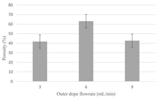 Porosity of 0.25 Cu2O/PVDF DLHF membrane for 3 mL/min, 6 mL/min and 9 mL/min outer dope flowrate.