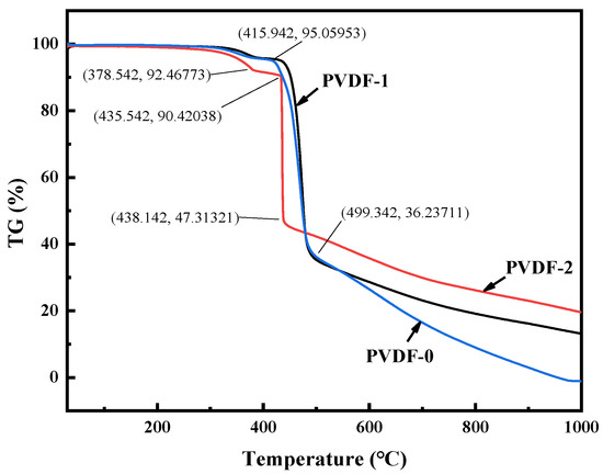 TGA of the PVDF-0, PVDF-1, and PVDF-1.