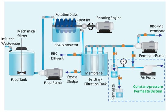 - Waqas, S.; Bilad, M.R.; Man, Z.B.; Klaysom, C.; Jaafar, J.; Khan, A.L. An integrated rotating biological contactor and membrane separation process for domestic wastewater treatment. Alexandria Eng. J. 2020, 59, 4257–4265. [Google Scholar] [CrossRef]