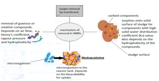 - With PW being comprised of more different components than just oil–water emulsion, the individual interactive influence of PW components on properties and parameters of a conventional MBR and modified system can be studied systematically to give new insights. For instance, the degradation chemistry of initial pollutants should be understood. Additionally, dynamic models could be developed which should focus on individual characteristic treatment and hydrodynamic flow behavior of synthetic and real feeds in the reactor.