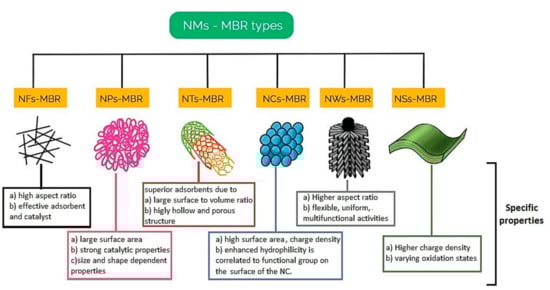 Types of nanomaterials of hybrid NMs-MBR systems adapted and modified from [146,147].