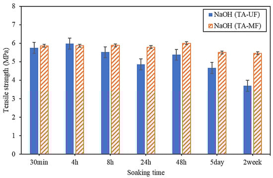Tensile strength of MF and UF membranes filtrated with tannic acid in NaOH solutions.