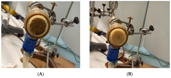 As can be seen in Figure 3, strong fouling appeared for case C, eventually leading to clogging of the fiber lumens, blocking the entrances to the hollow fibers that make up the membrane.