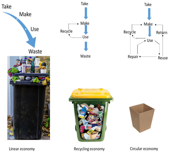 There are major challenges to the practical application of circular economy concepts in terms of environmental sustainability. Owing to the second law of thermodynamics—entropy, as stated by Georgescu-Roegen [36]—recycling will constantly need energy, and there will always be incomplete waste and side-product generation. This could be attributed to increasing entropy and decreasing energy. This, of course, is true. Degenerated materials are lost in the environment, and their recovery is always difficult. The exploration, assembly, and recovery would require huge amounts of energy [37]. Hence, according to Georgescu-Roegen, total recycling is impossible [36]. For instance, in the use of residues cut from the forest as a source for renewable energy and an alternative to the combustion of fossil fuel, the nutrient-rich portions of the trees, bark, twists, branches, and needles are detached from the forest ecosystem, where they would assist in the ecosystem’s wellbeing, biodiversity and forest development [38]. Energy is required for this action energy. Furthermore, the machine utilized for this industrial process requires energy and materials, resulting in waste and by-product generation. Nevertheless, a case-by-case analysis is required for the sustainable contribution of circular economy projects.