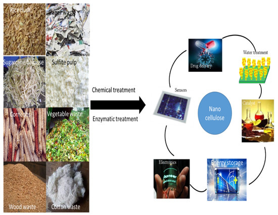 Potential applications of nanocellulose from waste biomass to value-added products (adapted and modified from Thakur et al. [69]).