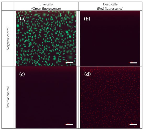 The CCK-8 assay [29] was adopted in this study to evaluate the cytotoxicity of PVA–HTCC nanofiber membranes on mouse fibroblasts L929 cells. Cell viability (i.e., cell survival rate) was qualitatively confirmed using live/dead cell fluorescent imaging [29]. The cell images obtained from negative and positive controls are shown in Figure 11A(a–f). The negative control (i.e., ~100% of cell survival) was indicated by the green fluorescence signal [Figure 11A(a,b)], while the positive control (i.e., ~0% of cell survival) was indicated by the red fluorescence signal [Figure 11A(c,d)]. As shown in the fluorescence images, the PVA–HTCC nanofiber membrane did not show the cytotoxic effect on L929 cells [Figure 11A(e,f)]. The cytotoxicity of PVA/HTCC/BI nanofiber membrane was further quantitatively measured by indirect methods using CCK-8 assay. The cell viability for PVA–HTCC nanofiber membrane as analyzed using CCK-8 assay is shown in Figure 11B. The results proved the non-cytotoxicity of PVA–HTCC nanofiber membrane, as indicated by the ~100% of cell viability. Hence, this work demonstrated that the PVA–HTCC nanofiber membrane has good cell biocompatibility and shows no cytotoxicity to L929 cells. Hence, it also can be potentially utilized in biomedical applications.