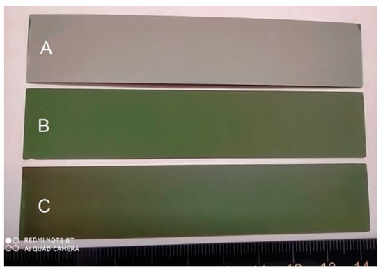 Photograph of YSZ electrolyte films (from Table 1) annealed at 1200 °C: A—film 3, B—film 2, C—film 1.