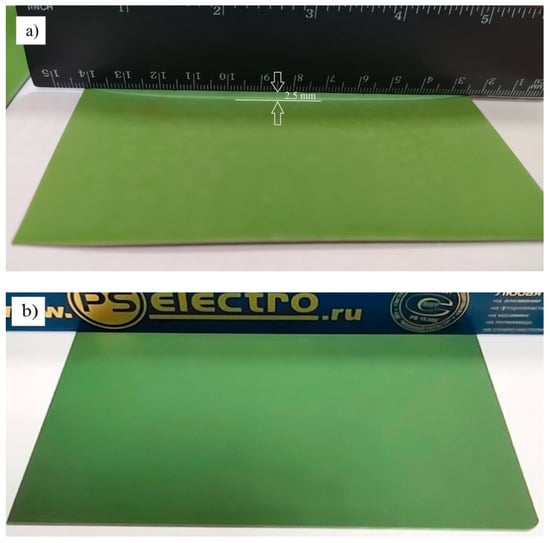 To test practical implications, the YSZ electrolyte film 5 µm thick was deposited onto 100 × 100 mm2 700 μm thick anode substrates in the transition mode, at a 34 nm/min deposition rate. The obtained sample was placed between two flat alumina plates 120 × 120 × 20 mm3 in size and 600 g weight and then annealed at 1200 °C in air under the additional load of 2000 g. In Figure 11b, one can see that the fabricated anode-supported half-cell remains flat; and in Figure 11a, it is strongly deformed after the formation of 5 µm thick YSZ electrolyte film in the oxide mode followed by the stress-free annealing.