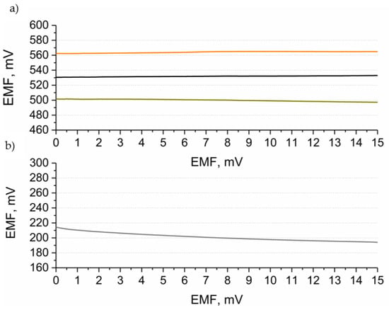 The pH test was conducted regardless of the presence of hydrous cerium dioxide in the composite materials, which exhibits a pH dependence [12]. The pH sensitivity test was performed for designed solid-contact electrodes in the presence of a coated disc electrode as a control group (Figure 7).