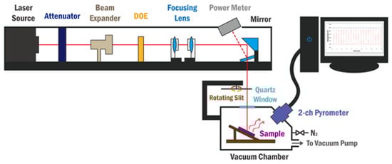 Generally, a material can be cooled by conduction, convection, or radiation [11]. However, the cooling efficiencies by conduction and convection are very limited because of the thin membrane structure of the EUV pellicle and the high-vacuum environment of the EUV scanner, respectively. Therefore, the EUV pellicle is mainly cooled by radiation [12], and ensuring the thermal emissivity of the pellicle structure is important [13,14,15]. However, the emissivity values of nanoscale thin films are not easily available, and the measurement of emissivity is not intuitive.