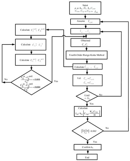 in which z is the coordinate along with the flowing direction, and the concentration polarization coefficient was derived and obtained by equating Equations (1) and (3) () and Equations (2) and (3) (), respectively, as follows: