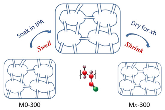 Schematic diagram for the pore structure of modified PAN porous membranes (Mx-300) via the solvent post-processing method.