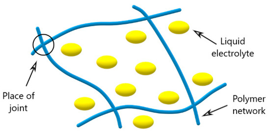 Polymer gel electrolytes consist of a polymer matrix containing solvents that solvate the ions. Figure 2 shows a schematic representation of the PGE.