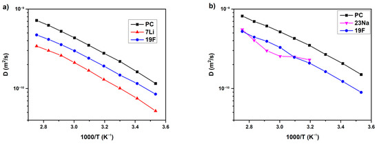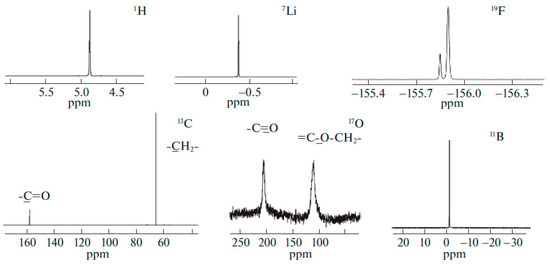 NMR is widely applied for polymer electrolytes. The main direction of investigations is lithium cation surroundings, local and macroscopic mobilities of Li+ and F−-containing fragments, and electrolyte composition–ion transport correlations. Modern and complicated NMR techniques are employed, especially solid-state high resolution magic angle spinning (MAS) NMR, pulsed-field gradient NMR, and NMR spin relaxation [13,29,32,33,34,37,39,40,42,47,49,50,51,52,53,54,56,57,58,59,60,61,65,72,73,76,77,80,92,95,96,97,98,99,100,101,102,103,104,105,106,107,108,109,110,111,112,113,114,115,116,117,118,119,120,121,122,123,124,125,126,127,128].