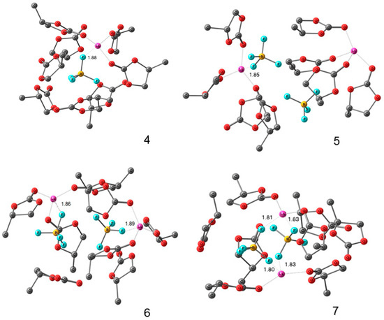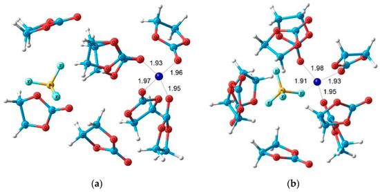 - Tulibaeva, G.Z.; Shestakov, A.F.; Volkov, V.I.; Yarmolenko, O.V. Structure of LiBF4 Solvate Complexes in Ethylene Carbonate, Based on High-Resolution NMR and Quantum-Chemical Data. Russ. J. Phys. Chem. 2018, 92, 749–755. [Google Scholar] [CrossRef]