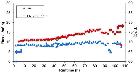 Flux and feed temperature profile from pilot tests using a 2-inch module.