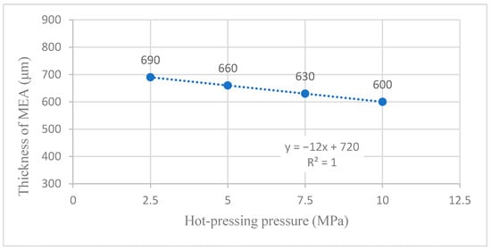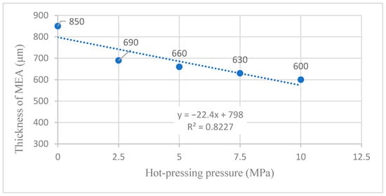 where refers to the thickness of MEA and refers to the hot-pressing pressure. is the coefficient of determination.