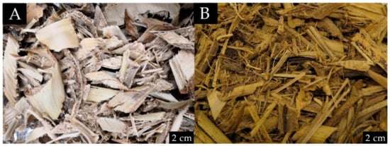 The isolation of CNFs from banana pseudostem requires several steps. First, the partially-dried banana trunks were obtained from Universiti Putra Malaysia Kampus Bintulu, Sarawak. Upon receipt, the banana trunks were dried in a pressure convection oven at 60 °C for 48 h. Figure 1 shows the differences between the dried Musa acuminata and Musa balbisiana. The dried M. balbisiana pseudostem appears darker when compared to M. acuminata, which may indicate higher lignin and cellulose content. A previous study indicates that the black-colored substances obtained from the pulping process is mostly due to lignin (46% of the total solid) and hemicellulose [16]. Another study also reported that the wood fiber from M. balbisiana has significantly higher lignin and hemicellulose contents [17].