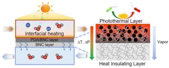 - Wu, X.; Cao, S.; Ghim, D.; Jiang, Q.; Singamaneni, S.; Jun, Y.S. A Thermally Engineered Polydopamine and Bacterial Nanocellulose Bilayer Membrane for Photothermal Membrane Distillation with Bactericidal Capability. Nano Energy 2021, 79, 105353. [Google Scholar] [CrossRef]