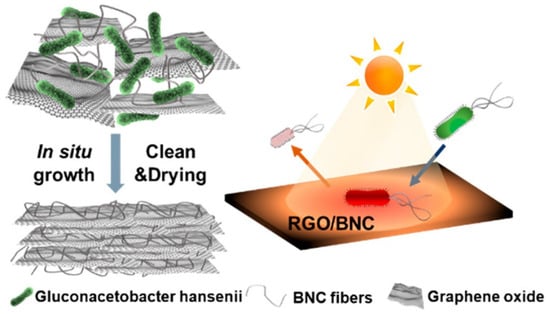 - Jiang, Q.; Ghim, D.; Cao, S.; Tadepalli, S.; Liu, K.K.; Kwon, H.; Luan, J.; Min, Y.; Jun, Y.S.; Singamaneni, S. Photothermally Active Reduced Graphene Oxide/Bacterial Nanocellulose Composites as Biofouling-Resistant Ultrafiltration Membranes. Environ. Sci. Technol. 2019, 53, 412–421. [Google Scholar] [CrossRef]