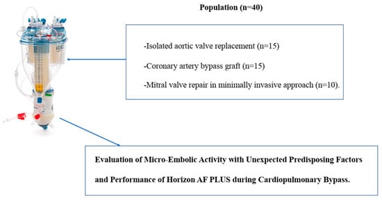GMEs are considered a cause of neurocognitive deficits. The pathophysiological mechanism is multiple [3]. When a microbubble occludes a blood vessel, hypoxia will occur downstream from the blockage [5]. The duration of hypoxia and the deleterious effects of this hypoxia will very much depend on the size and number of GME as well as on the gas composition of these microbubbles [6]. At the same time, the microbubble will induce local inflammation with edema formation, which will increase the cerebral area at risk. Finally, reperfusion injury may cause additional harm once the initial ischemia is resolved [7]. Microbubbles between 20 and 60 μm will be distributed according to the blood flow since they have virtually no buoyancy in moving blood. Microbubbles of 20 μm will be absorbed quickly, depending upon the solubility coefficient and partial pressures of the gas in the bubble and the surrounding blood and tissue [8]. This occurs if the bubble is not coated with lipid, which changes the rate of gas exchange between the bubble and blood [9]. In this context, for the first time, we have highlighted in our sample an incidence of 45% of sudden events during the conduct of the CPB that can increase the production of GME, independent of the perfusion methodology and technique but linked to the aspect of surgical management [10]. The high efficiency of the Horizon AF PLUS device, in counteracting micro-embolic activity, made the result in terms of the volume of microbubbles in the arterial line at the end of CPB, almost comparable to the group (55%) that did not report predisposing factors for the micro-embolic activity during CPB. The limitations of this study were not related to postoperative outcomes, such as (postoperative neurocognitive disorders (POCD), length of stay in ICU and postoperative quality of life) as both groups in this setting reported a low volume of gas micro-emboli in the arterial line of the CPB. However, aspects related to the gaseous micro-embolic activity are often related in cardiac surgery to the management of de-airing before and after removal of the cross-clamp, and to the CO2 management technique in the surgical field. The other limitation of this study was that we analyzed patients with coronary artery disease who are known to have atheroemboli, which could contribute to GME [11,12,13,14,15].