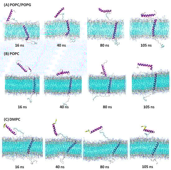 - Asare, I.K.; Perez, A.; Garcia, A.B.; Cruz, M.F.; Moura, A.C.M.; Campbell, C.C.; Scheyer, M.; Alao, J.P.; Kravats, A.N.; Lorigan, G.A.; et al. Studying structural and dynamic properties of KCNE3 in different membrane mimic systems using molecular dynamics simulations. Biophys. J. 2022, 121, 196a. [Google Scholar] [CrossRef]
